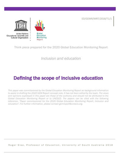 Defining the scope of inclusive education: think piece prepared for the 2020 Global education monitoring report, Inclusion and education