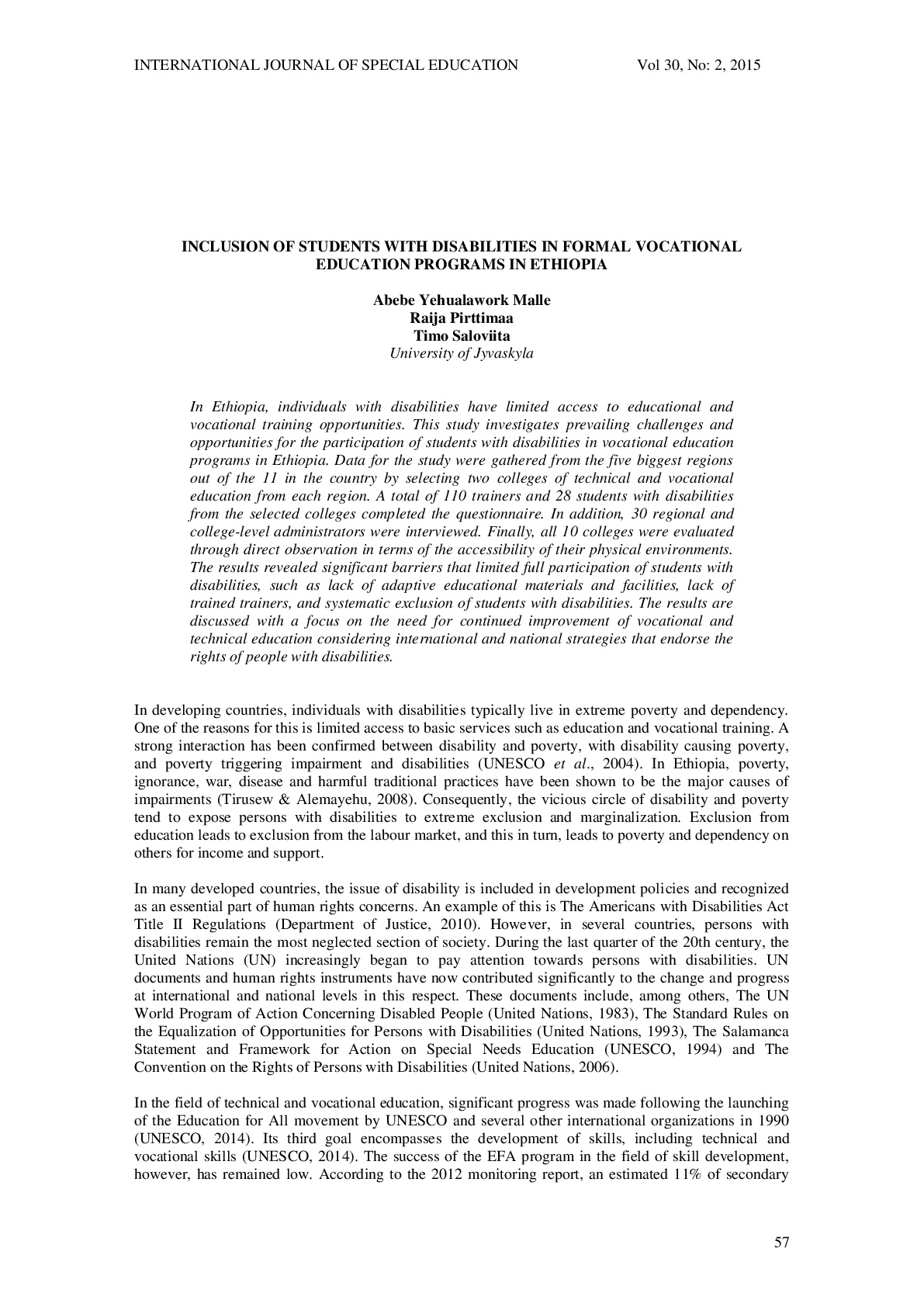 Inclusion of students with disabilities in formal vocation education programs in Ethiopia
