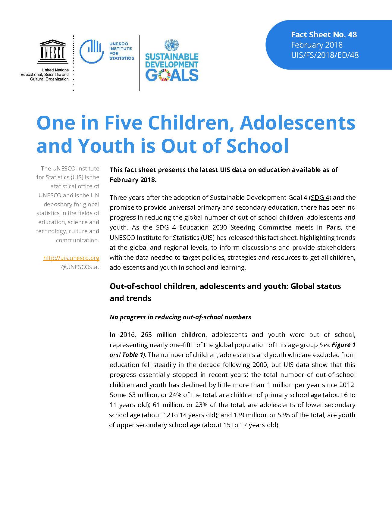 One in Five Children, Adolescents and Youth is Out of School